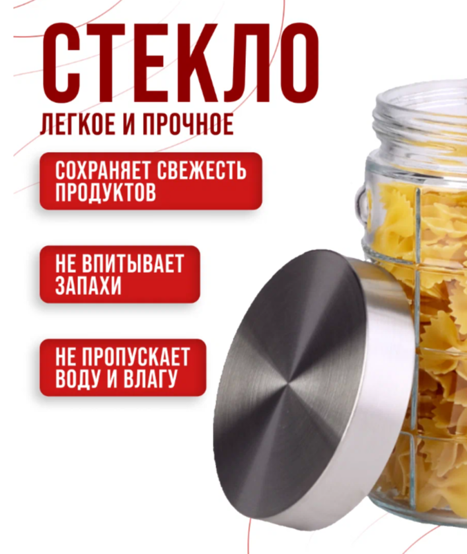 Материал: корпус банок - стекло; крышки - полипропилен/нержавеющая сталь.