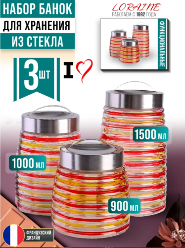 АКЦИЯ 674р. 1300р.31028 Набор банок для сыпучик продуктов 4пр стекло/нерж/ст MB (х4)
