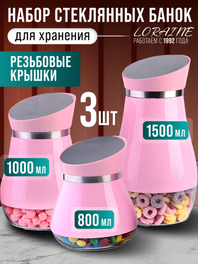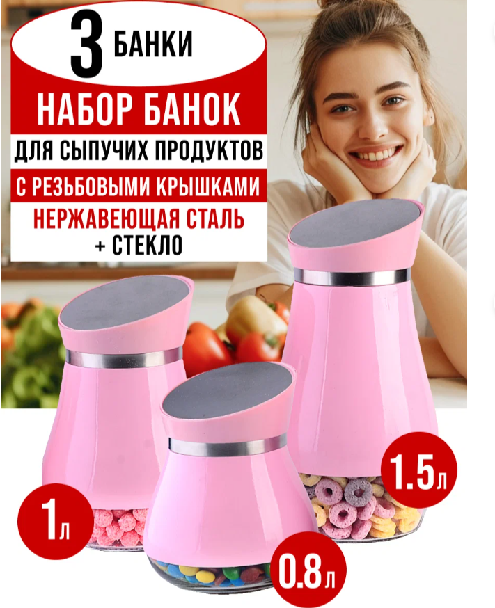 Набор 3 предмета: банки для сыпучих продуктов 800 мл, 1 л, 1,5 л.
