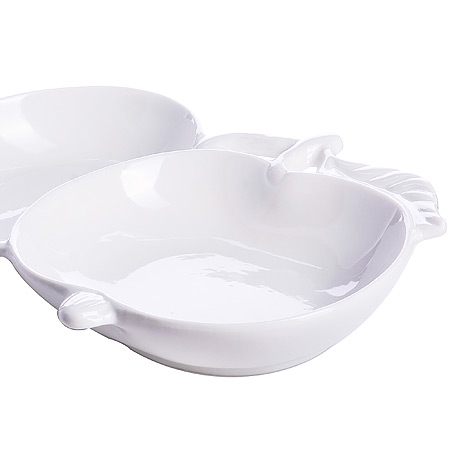 Менажница фарфоровая LORAINE, сочетает в себе изысканный дизайн с максимальной функциональностью. Тарелка имеет сложную изящную форму в виде двух яблок. Менажница имеет 2 отделения: одно большое и одно маленькое. Такое сервировочное блюдо предназначено для красивой подачи конфет, орехов, варенья и десертов, а также можно использовать для сервировки оливок, сыра, соусов и мелких закусок. Менажница украсит сервировку вашего стола и подчеркнет прекрасный вкус хозяйки. Блюдо для сервировки является отличным вариантом подарка для любой женщины: мамы, бабушки, подруги. Этот функциональный предмет посуды прост в обращении, легко моется, не занимает много места.