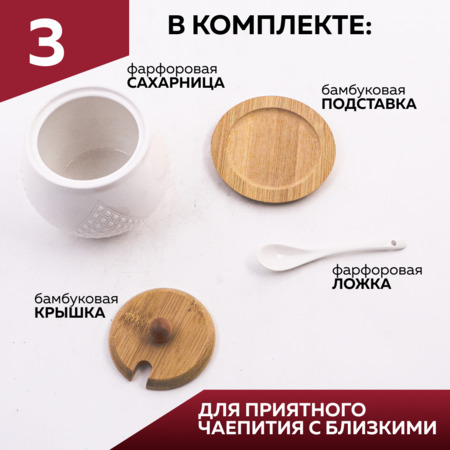 Набор: сахарница 1 шт, ложечка 1 шт, подставка 1 шт.