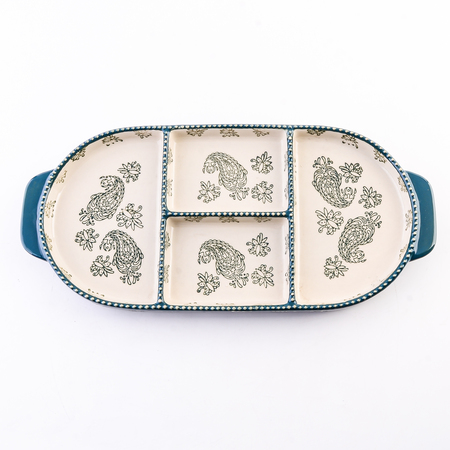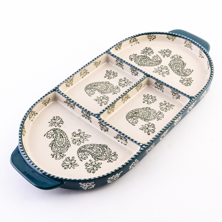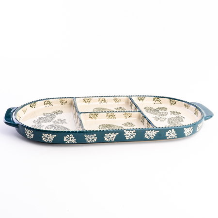 Менажница керамическая LORAINE – это незаменимый инструмент на кухне, открывающий безграничные возможности для кулинарного творчества. Идеально подходит для подачи различных закусок, соусов, оливок, орехов, сухофруктов и других кулинарных изысков. Разделенные секции позволяют аккуратно разместить разные виды угощений, не смешивая их вкусы и ароматы. Менажница станет незаменимым атрибутом как для праздничных застолий, так и для уютных домашних посиделок. Создавайте настоящие шедевры, достойные восхищения, легко и непринужденно, используя ее в духовке и микроволновой печи. Эта посуда изготовлена из высококачественной жаропрочной керамики, выдерживающей экстремальные температуры от -20 до +250 градусов, обеспечивая безопасность и долговечность на долгие годы. Керамика не только устойчива к температурным перепадам, но и бережно сохраняет естественный вкус и аромат продуктов, позволяя им раскрыться во всей красе. Благодаря продуманной конструкции и толстым стенкам, тепло равномерно распределяется по всей площади, гарантируя сочность и нежность каждого блюда. Приготовьте ароматное мясо, тающую во рту рыбу, аппетитный картофель, сочные овощи – результат всегда будет превосходным. Универсальность менажницы впечатляет: запекайте, тушите, сервируйте, храните – все в одной посуде! Она идеально подходит для приготовления разнообразных блюд, от повседневных обедов до изысканных праздничных угощений. Используйте ее в духовке, микроволновой и конвекционной печи, а также для хранения готовой пищи в холодильнике. Большие и удобные ручки обеспечивают легкий и безопасный захват, позволяя комфортно доставать и поднимать даже горячее блюдо. Помимо приготовления, менажница прекрасно подходит для эффектной подачи салатов, горячей еды, свежих овощей и фруктов, превращаясь в универсальный элемент сервировки стола. Она станет настоящим украшением праздничного стола или незаменимым помощником для большой семьи, позволяя легко приготовить восхитительный обед или ужин, которые удивят и восхитят ваших гостей. Она легко моется, не требует сложного ухода и подходит для мытья в посудомоечной машине. Эта керамическая менажница – не просто красивая и функциональная посуда, но и прекрасный подарок на любой праздник, будь то Новый год, Рождество, День рождения или новоселье, который обязательно будет оценен по достоинству. 35,7 х 16,5 х 3 см.