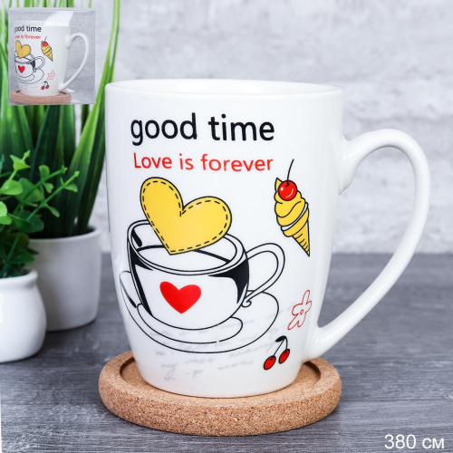 Кружка 380 мл Кофе Любовь с подставкой под горячее / F258 / в подарочной коробке PVS/АКЦИЯ