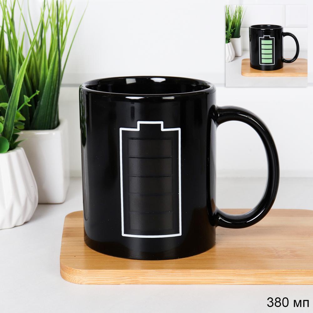 Кружка 380 мл Хамелеон Батарейка / HY-301 /уп 50/ в коробке/ заряжается от горячего напитка/ 9,5*8*11,5 23 февраля