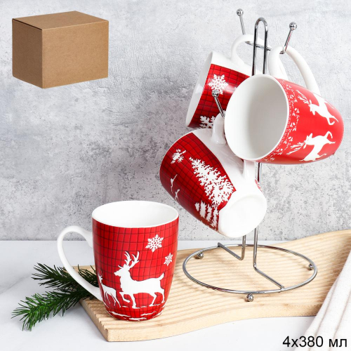 Кружка 4 штуки на металлстенде 350 мл / 538A /кружка новогодняя/ в гофрокоробе/ АКЦИЯ