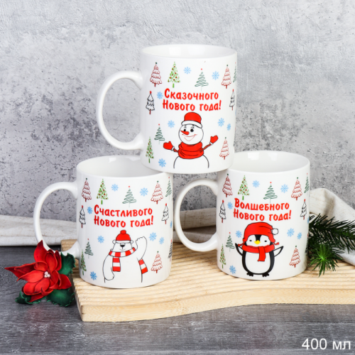 Кружка 400 мл Елки микс / TR-520-mix /уп 72/новогодняя/ УЦЕНКА
