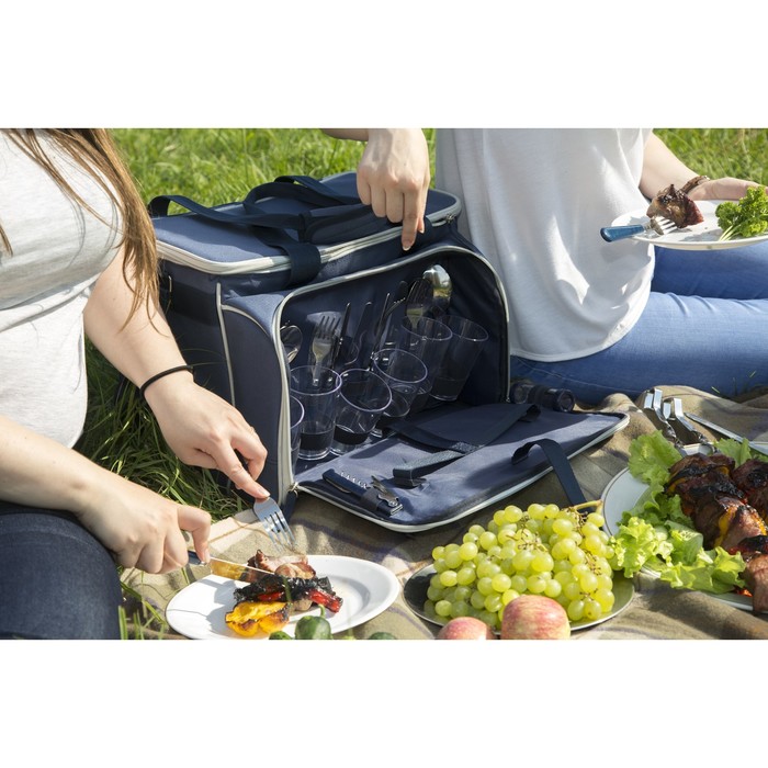 Термосумка «Арктика» с набором посуды для пикника на 6 человек, объём 22 л, синий