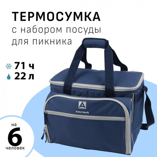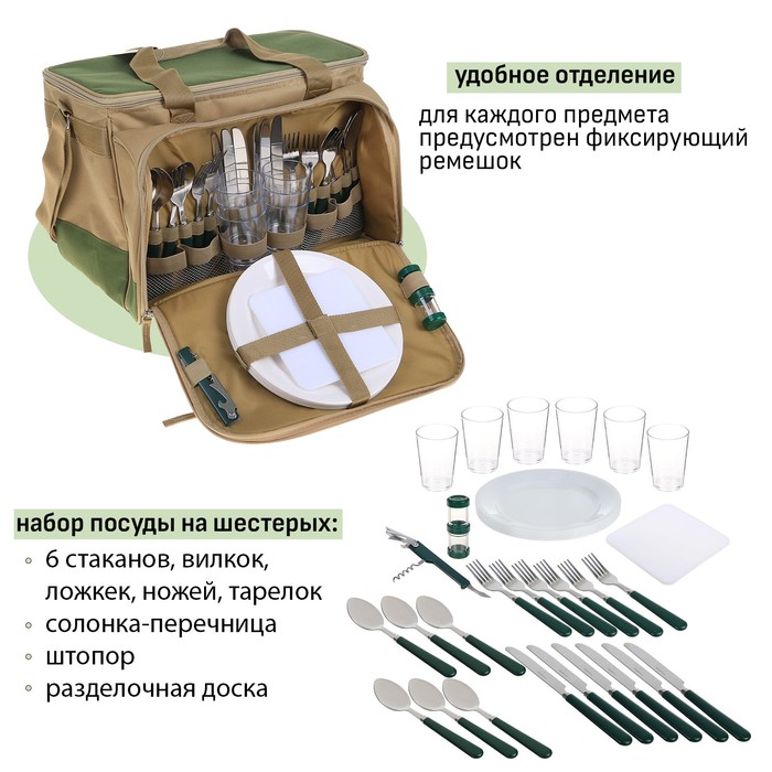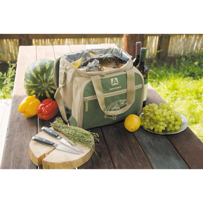 Термосумка «Арктика» с набором посуды для пикника на 6 человек, объём 22 л, зелёная
