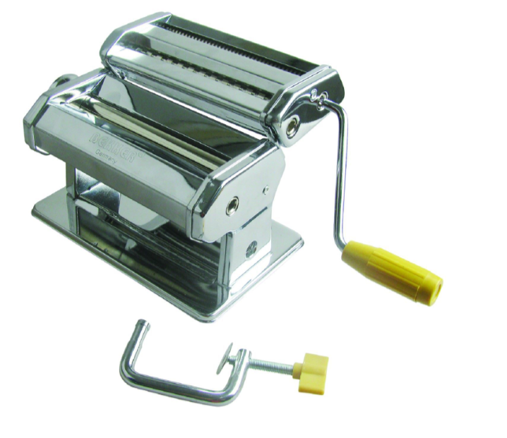 Лапшерезка 24*19,8*15,5см. Нарезной блок для 2-х видов лапши, валик для раскатки теста, регулятор толщины теста, ручка. Состав: нержавеющая сталь.
