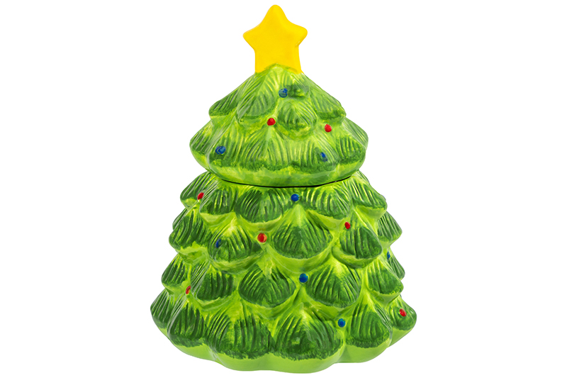 Банка для печенья «Ёлка» от Elan Gallery поможет организовать хранение продуктов на вашей кухне. Размер изделия – 17х17х23 см, объём – 1,2 литра. Высота без крышки – 12 см. Выполнена из керамики в виде наряженной праздничной ёлочки с большой звездой на верхушке. Мы создали коллекцию новогодних и рождественских товаров для сервировки и декора, которые наполнят пространство атмосферой уюта. Изделия помогут оформить интерьер праздничными композициями и добавят нотку зимнего волшебства. Ёмкость подойдёт для хранения разнообразных сыпучих продуктов. Заполните её сахаром, солью, а также другими специями и приправами, чтобы во время приготовления и приёма пищи всё необходимое было под рукой. Засыпьте внутрь чай или кофе, чтобы в любой момент заварить свежий напиток. Храните в ней крупы и макаронные изделия, ягоды, орехи и сухофрукты. Заполните контейнер сладостями: конфетами, леденцами, пряниками или печеньем. Подайте баночку к столу, чтобы идеально дополнить чайную сервировку! Фигурная крышечка защитит ваши продукты от попадания грязи и пыли. Не рекомендуется применять абразивные моющие средства. Не использовать в посудомоечной машине и микроволновой печи. Поставляется в дизайнерской картонной коробке – благодаря ей вам не потребуется дополнительная подарочная упаковка. В коллекции бренда Elan Gallery представлены посуда, сувениры и украшения с новогодней символикой. Каждый подберёт оригинальный сюрприз для семьи, друзей и коллег на Новый год и Рождество. Такой подарок наполнит дом семейным теплом и духом праздника!