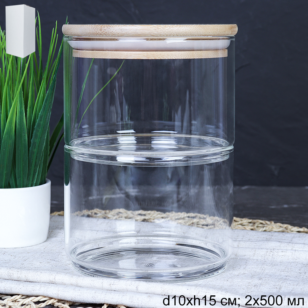 Банка для хранения 2-х ярусная бамбуковая крышка 500 мл / LCSC22-8/уп 60/