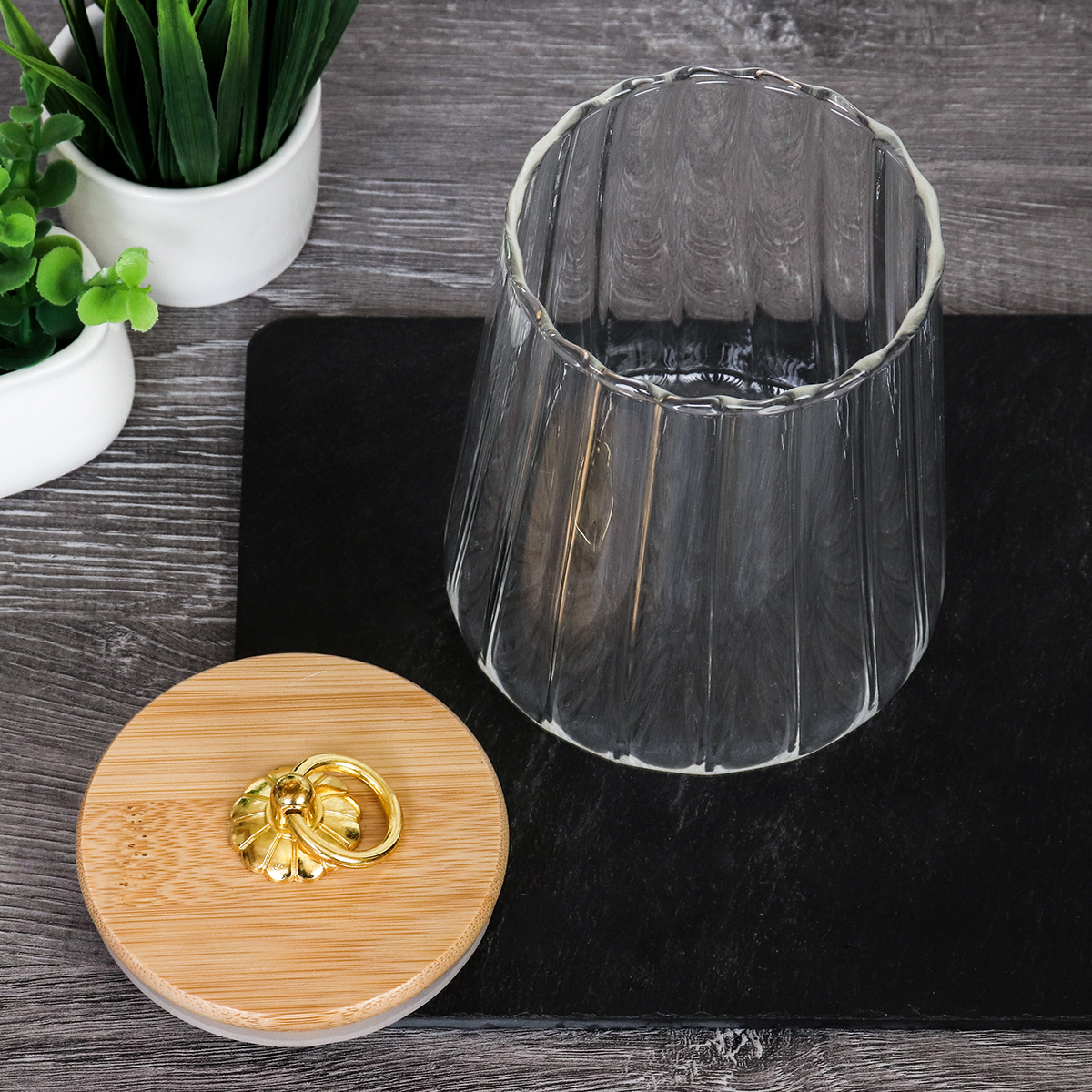 Банка для сыпучих бамбуковая крышка рифленая 700 мл / LCSC2922 /уп 80/*