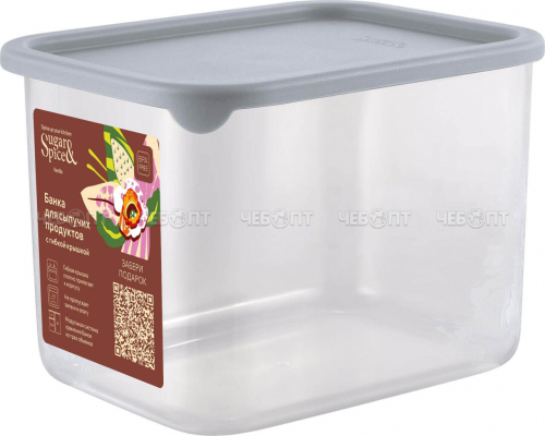 Банка для сыпучих продуктов 0,8 л КВАДРАТНАЯ Sugar&Spice 105*105*105 мм гибкая крышка ТРЮФЕЛЬ арт. SE168410025 [15] ПЛАСТИК РЕПАБЛИК. 5 шт.