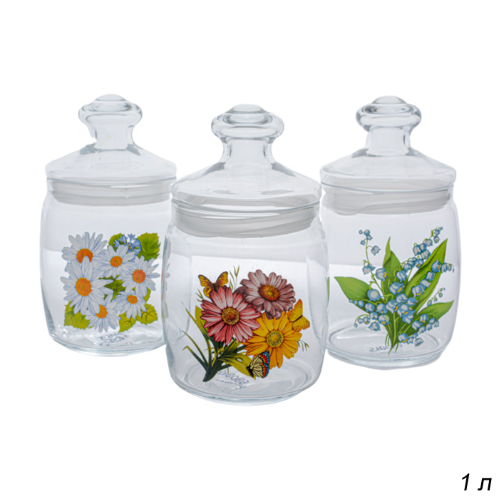 Банка для сыпучих продуктов 0,94 л / 97560 / деколь в гофре