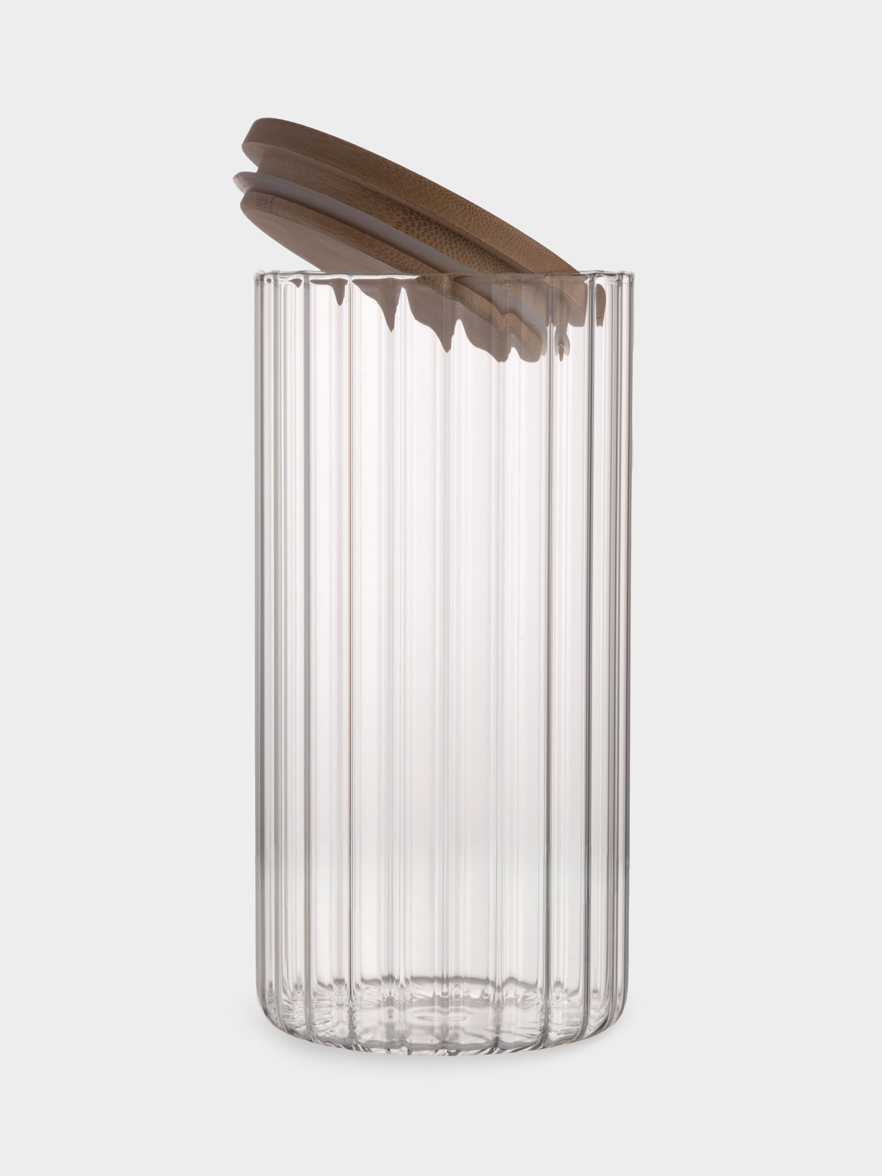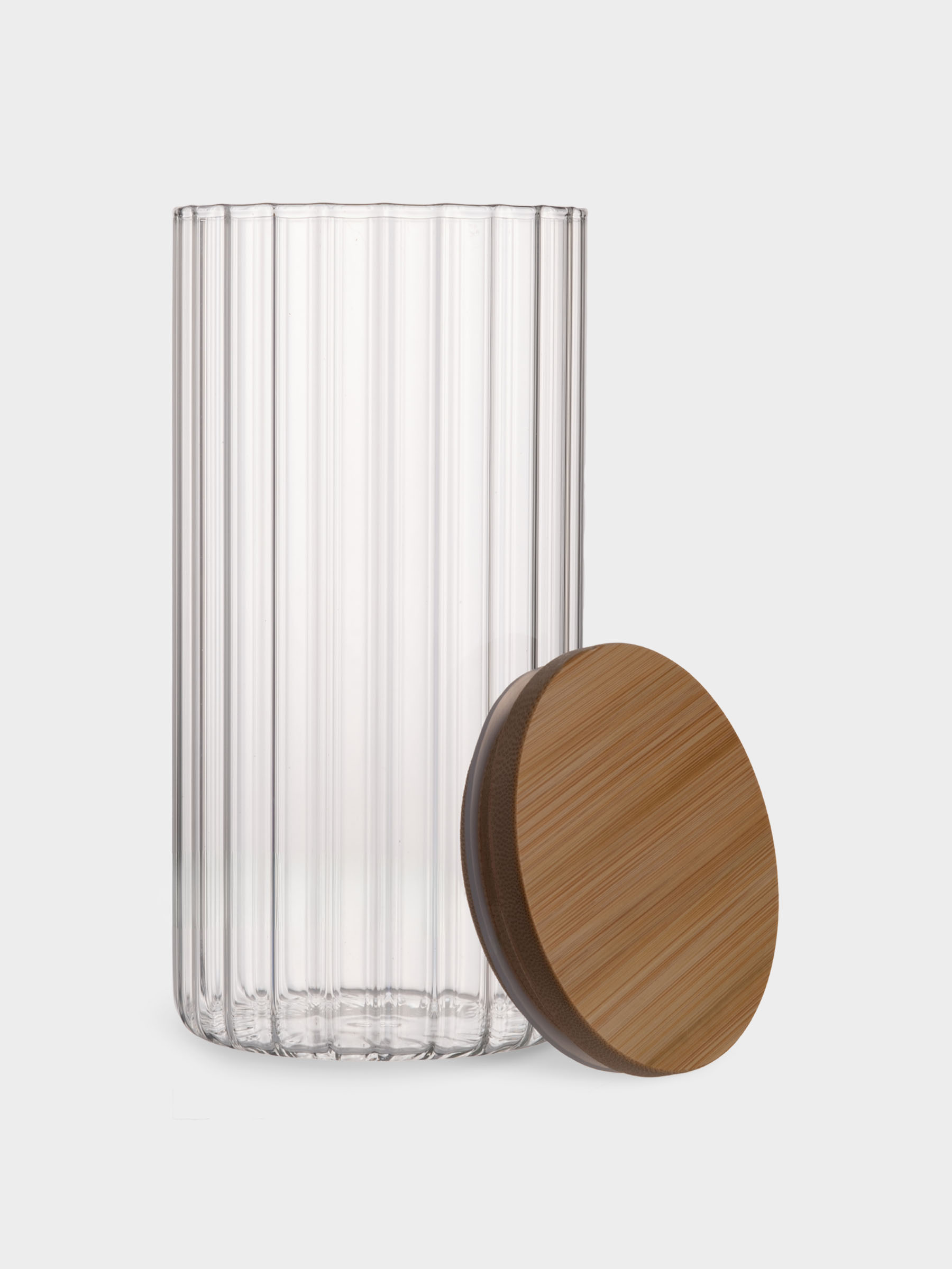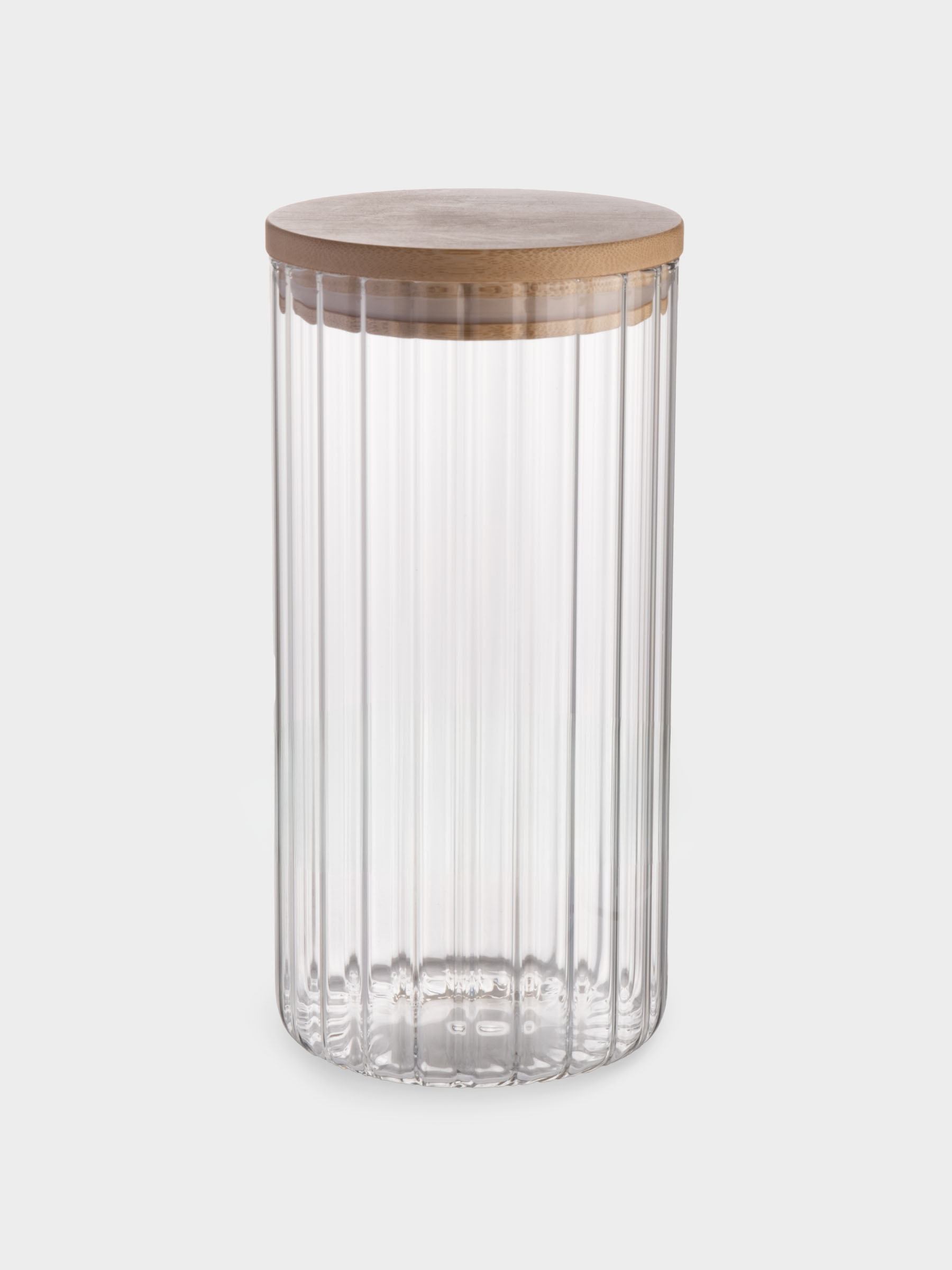 Банка для сыпучих продуктов. Объем: 1 л. Материал: термостойкое стекло, бамбук, силикон. Рекомендуется мыть вручную с применением мягких моющих средств. Не использовать для ухода абразивные чистящие средства и жесткие губки. Банку без крышки можно мыть в посудомоечной машине на щадящем режиме для стекла.