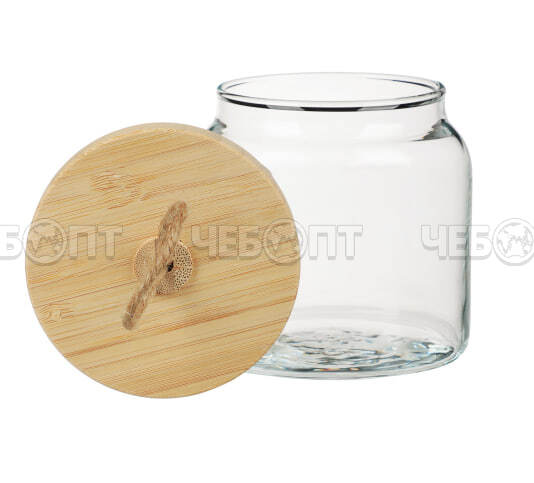 Банка для сыпучих продуктов 575 мл ВУДИ КРУГЛАЯ стеклянная, с бамбуковой крышкой арт. 43573SLB [6]