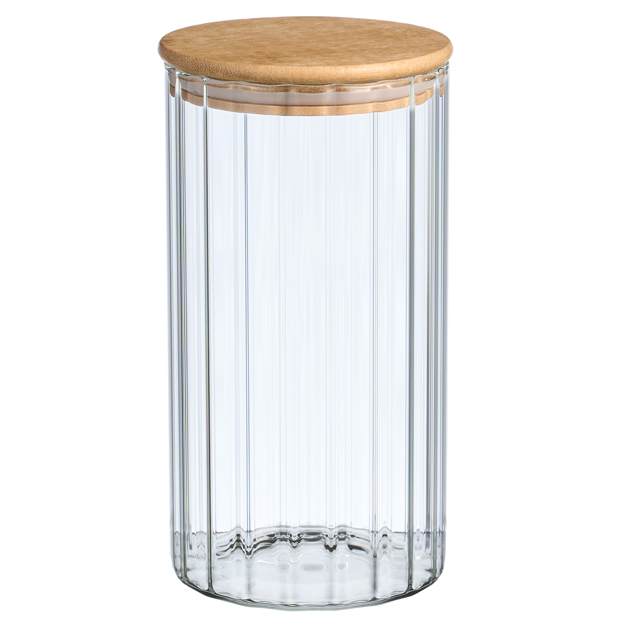 Вертикальные ребра на прозрачном стекле создают игру света и тени, превращая обычные предметы в элементы декора. Бамбуковые крышки добавляют уюта и подчеркивают натуральность материалов. Никакой вычурности — только чистые линии, которые легко вписываются в любой интерьер: от минималистичного лофта до уютного прованса.