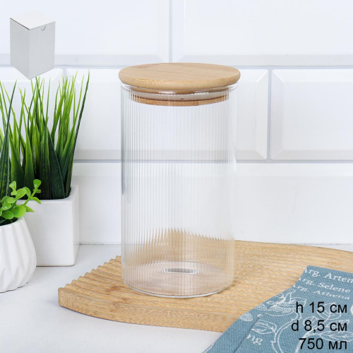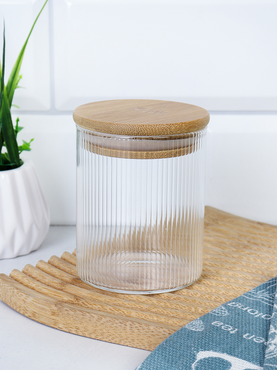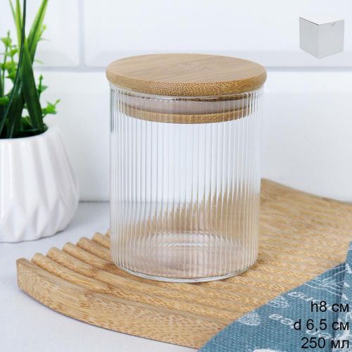 Банка круглая для сыпучих бамбуковая крышка d-65/80 мм Вертикаль 250 мл / 7173 /уп 200/