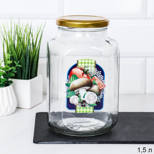 Банка с крышкой 1500 мл декор Грибы, помидоры / 01217-24311 /уп 18/ ПРОМО АКЦИЯ