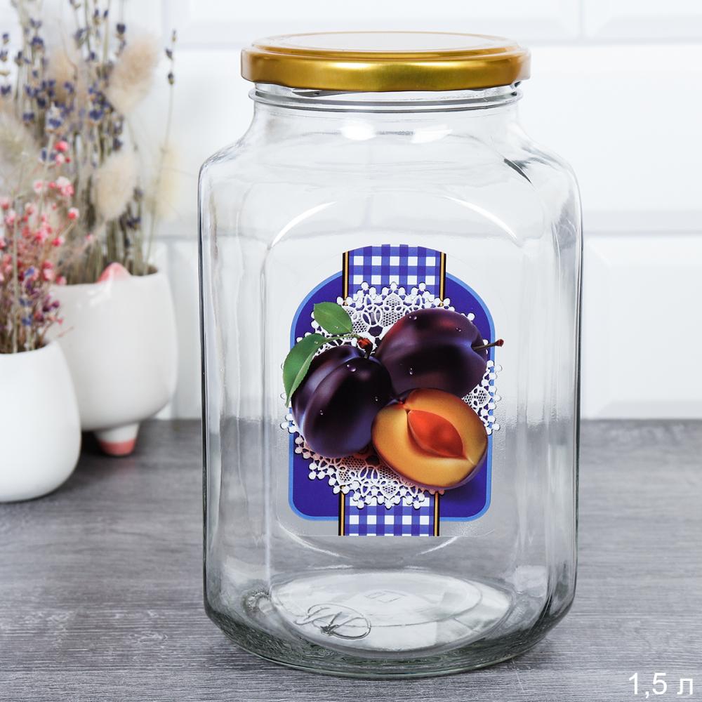 Банка с крышкой 1500 мл декор Слива / 01217-02432 /уп 18/ ПРОМО АКЦИЯ
