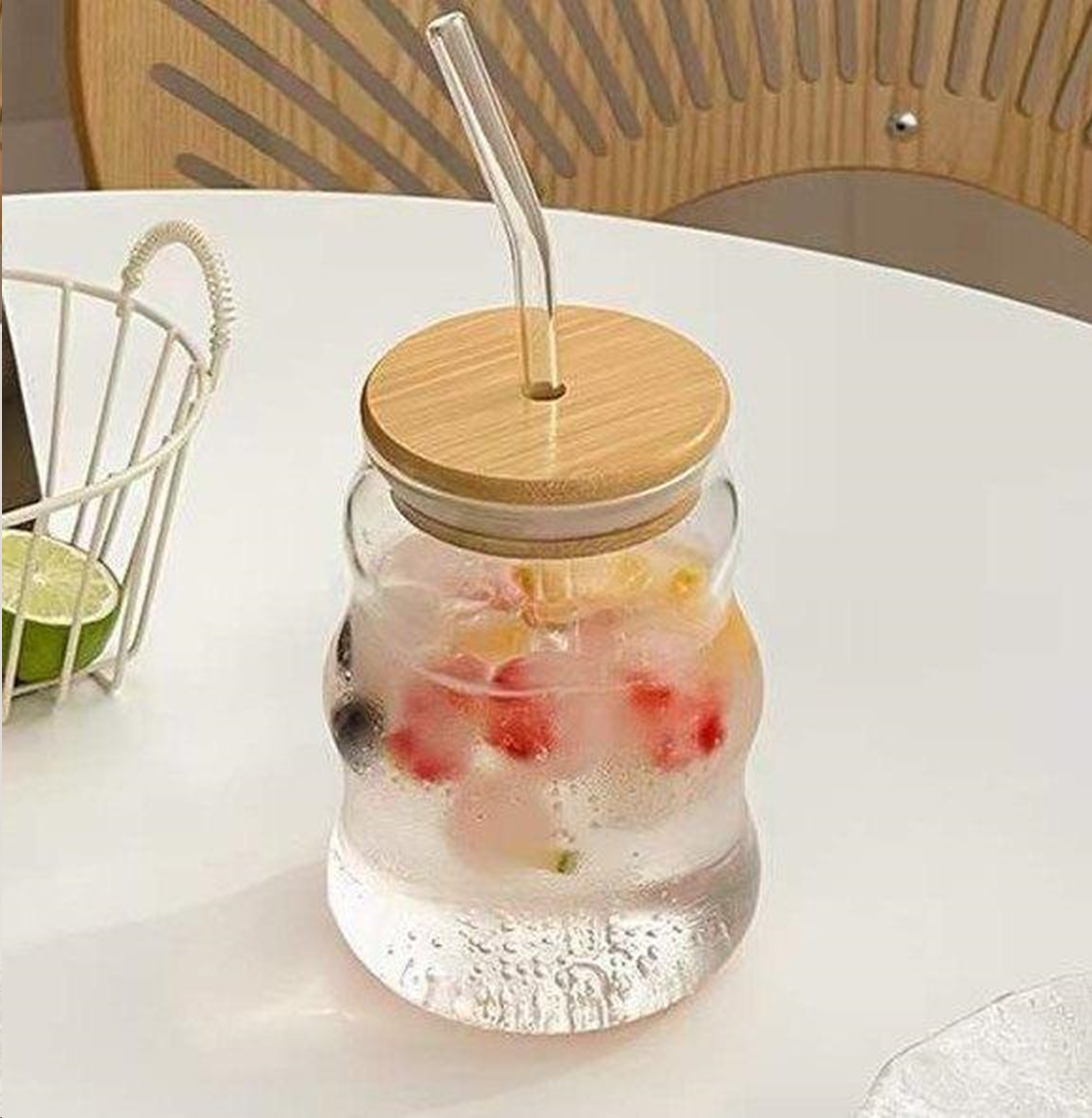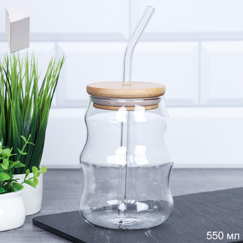 Банка стакан для смузи с трубочкой бамбуковая крышка 550 мл / LCWB4746 /уп 97/*Ц