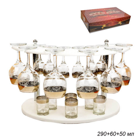 БАР набор для напитков 18 предметов Белый Барокко АКЦИЯ / B-O-GN-411-134-22 /уп 1/ 6 фужеров 290 мл +6 рюмок 60 мл +6 стопок 50 мл