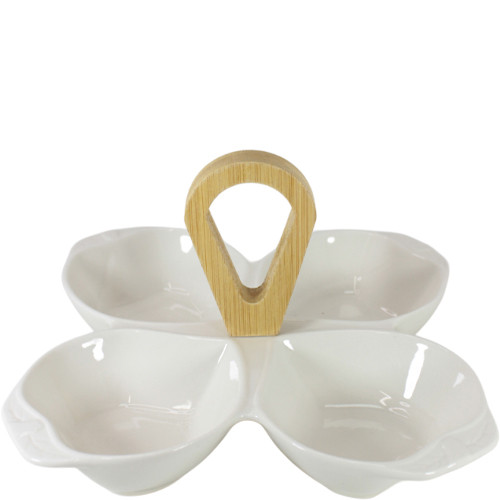 Менажница 4-секционная керамика с бамбуковой ручкой d20,5см (уп.48)