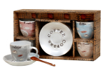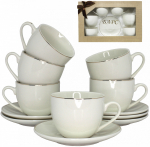 Представленный набор для чая произведён изпрочного фарфора. В него включаются 2 кружки и 2 блюдца, оформленные в одном стиле. Высокая прочность используемого фарфора позволяет достигать малой толщины корпуса, что важно как для дизайна изделий, так и для их удобства. Также фарфор отличается чистотой и безопасностью, не боится кипятка и чисток разными способами. Благодаря ненавязчивому оформлению такая посуда отлично дополняет любые интерьеры.Преимущества:•полная чистота производства;•приятный, ненавязчивый дизайн;•оптимальный объём кружки, диаметр блюдца.