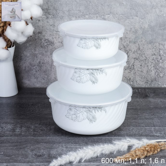 Набор салатников стеклокерамика 3пр с крышками (уп.12)
