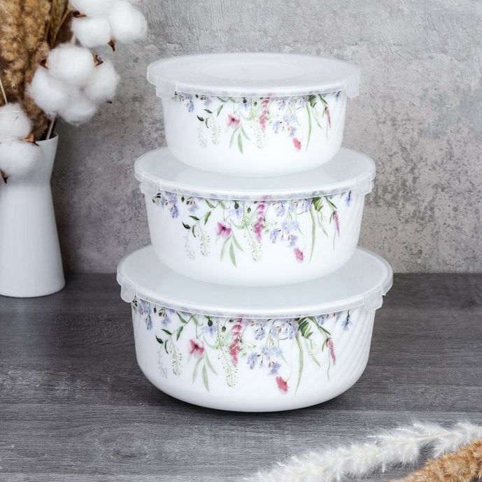 Набор салатников стеклокерамика 3пр с крышками (уп.12)