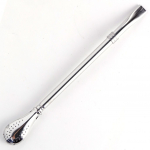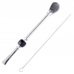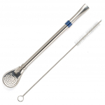 Бомбилья (бомбижья) - неотъемлемый спутник настоящего любителя мате. У настоящего матемана всегда небольшая коллекция разнообразных по форме бомбилей. Ситечко из множества отверстий не пропускает мелкие чаинки и позволяет набирать большое количество чая со дна калабаса.