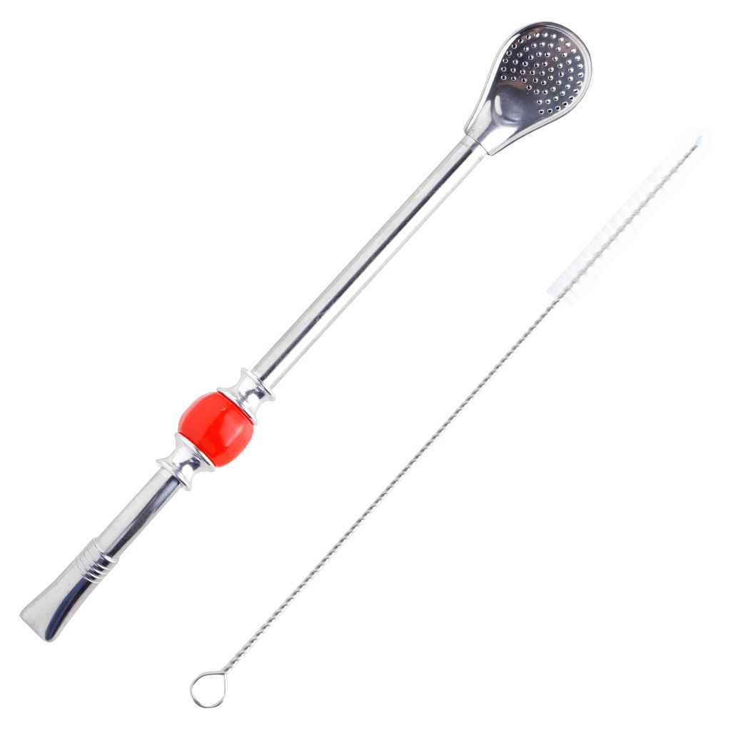 Бомбилья разборная 22 см с щеточкой для чистки, металл, красный камень ""
