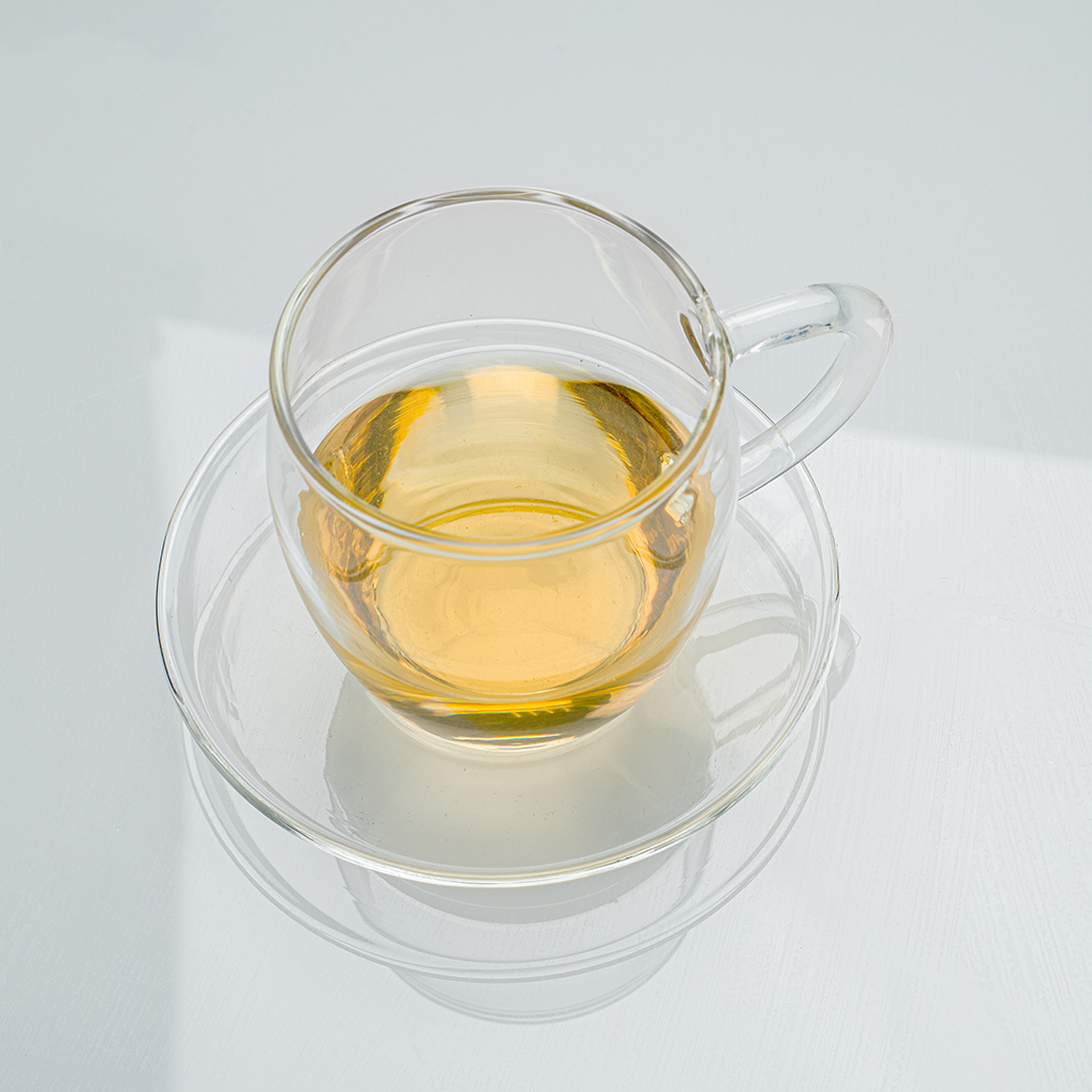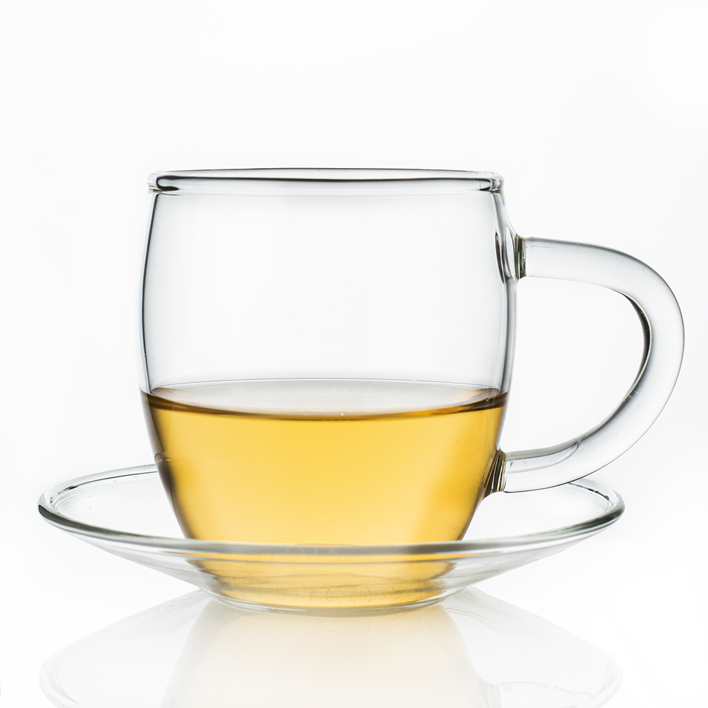 Маленькая чайная чашка на блюдце из стекла