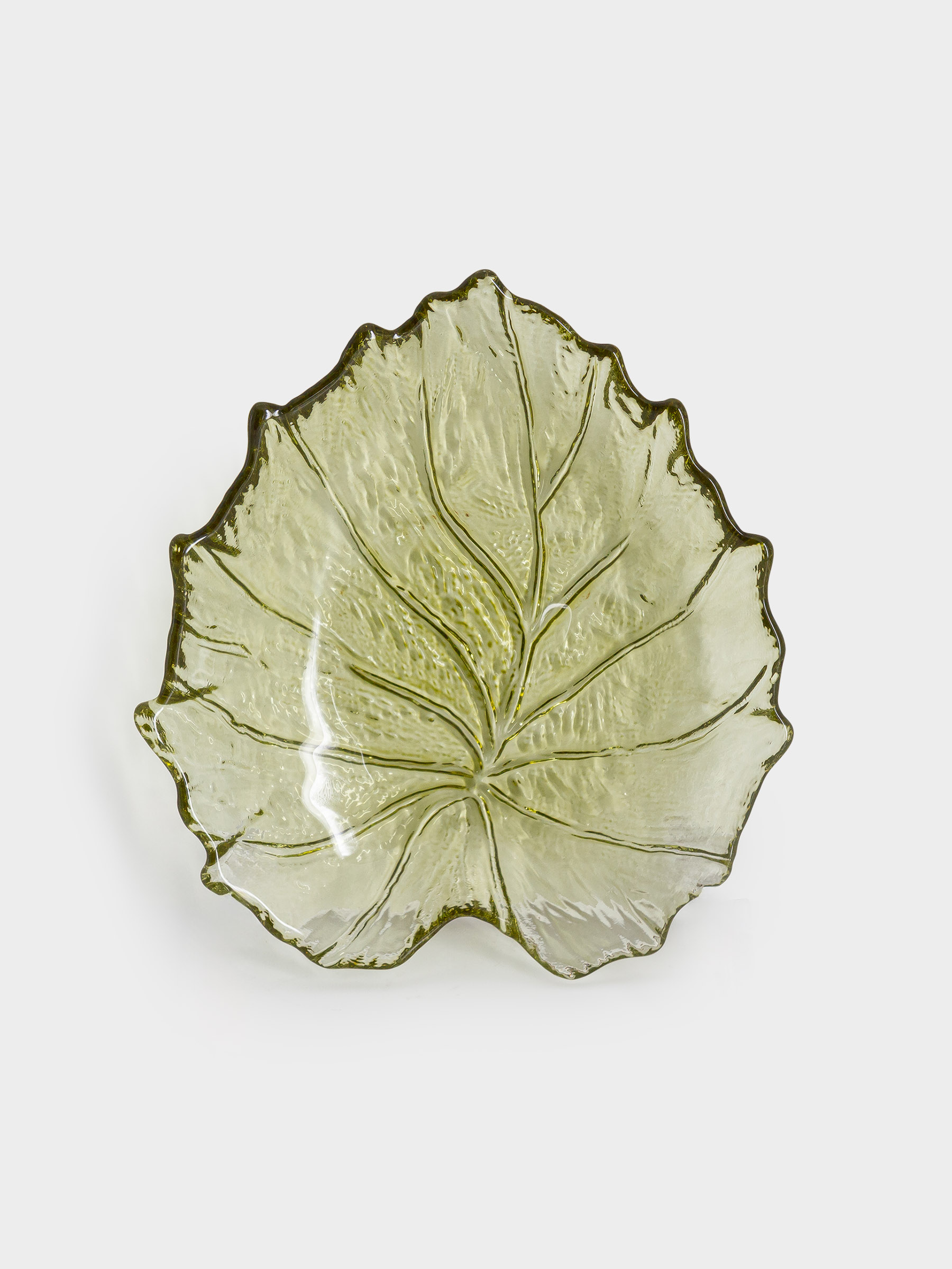 Блюдо, 16х14 см, стекло, зеленое, Лист, Autumn forest