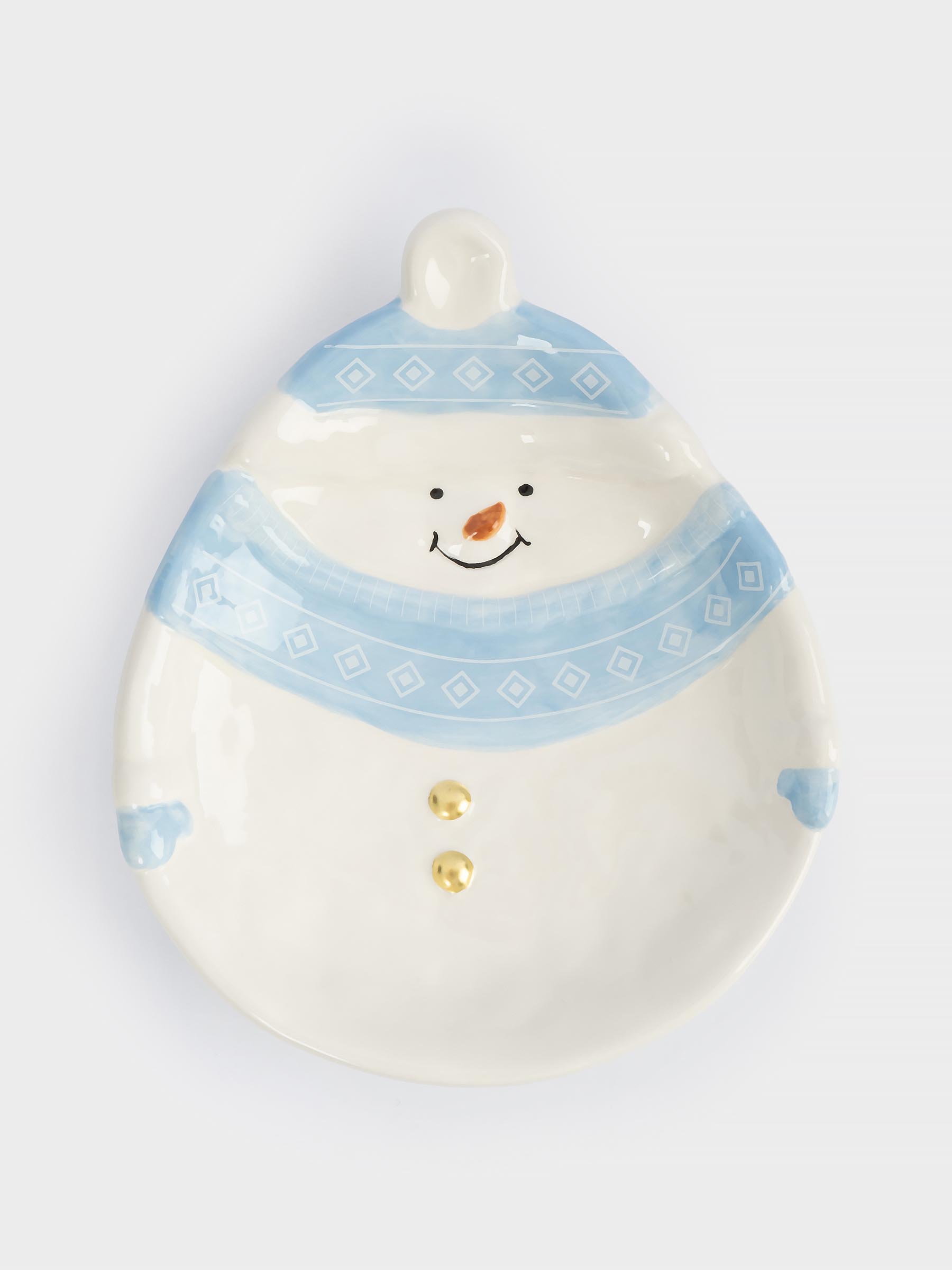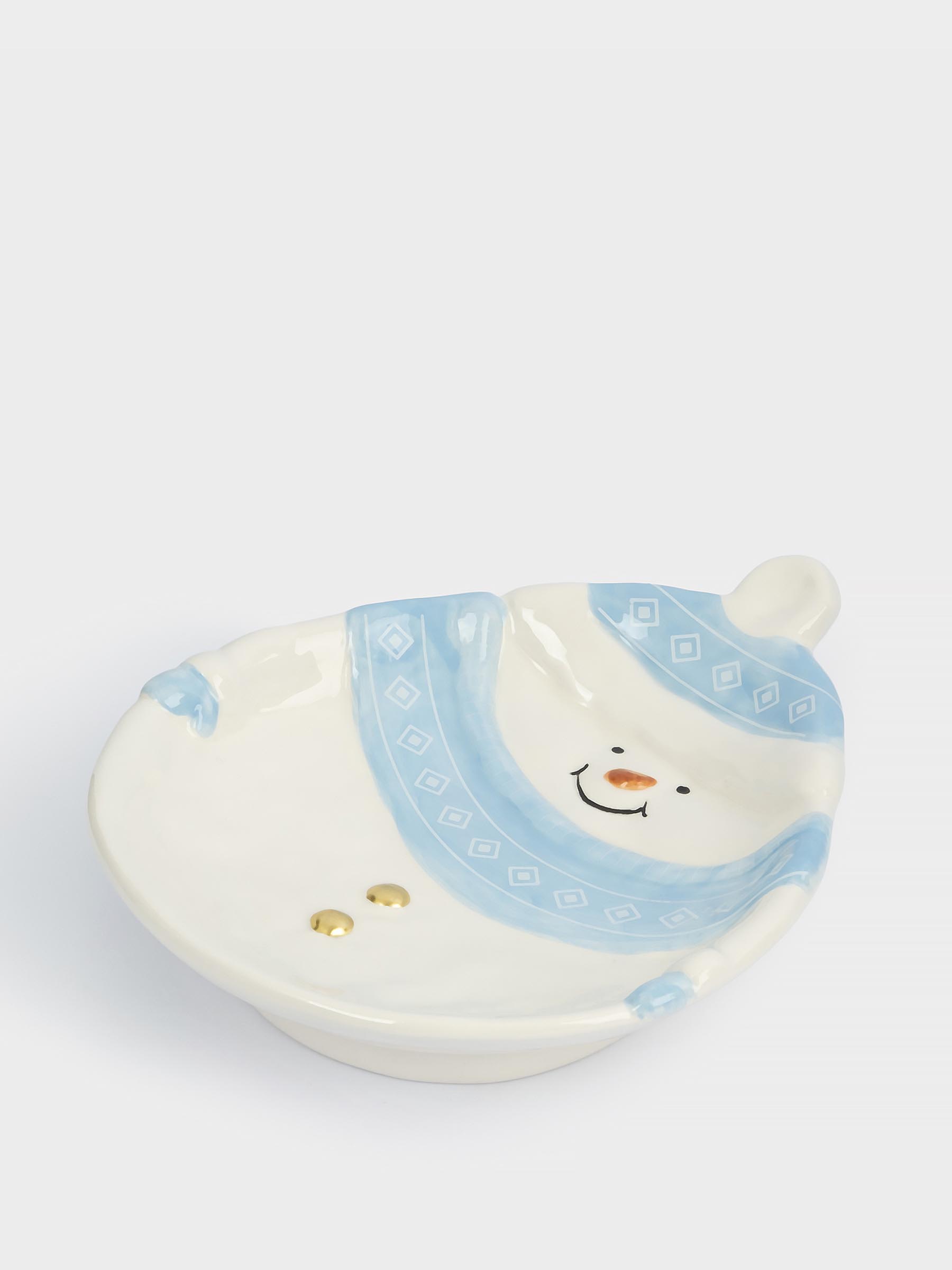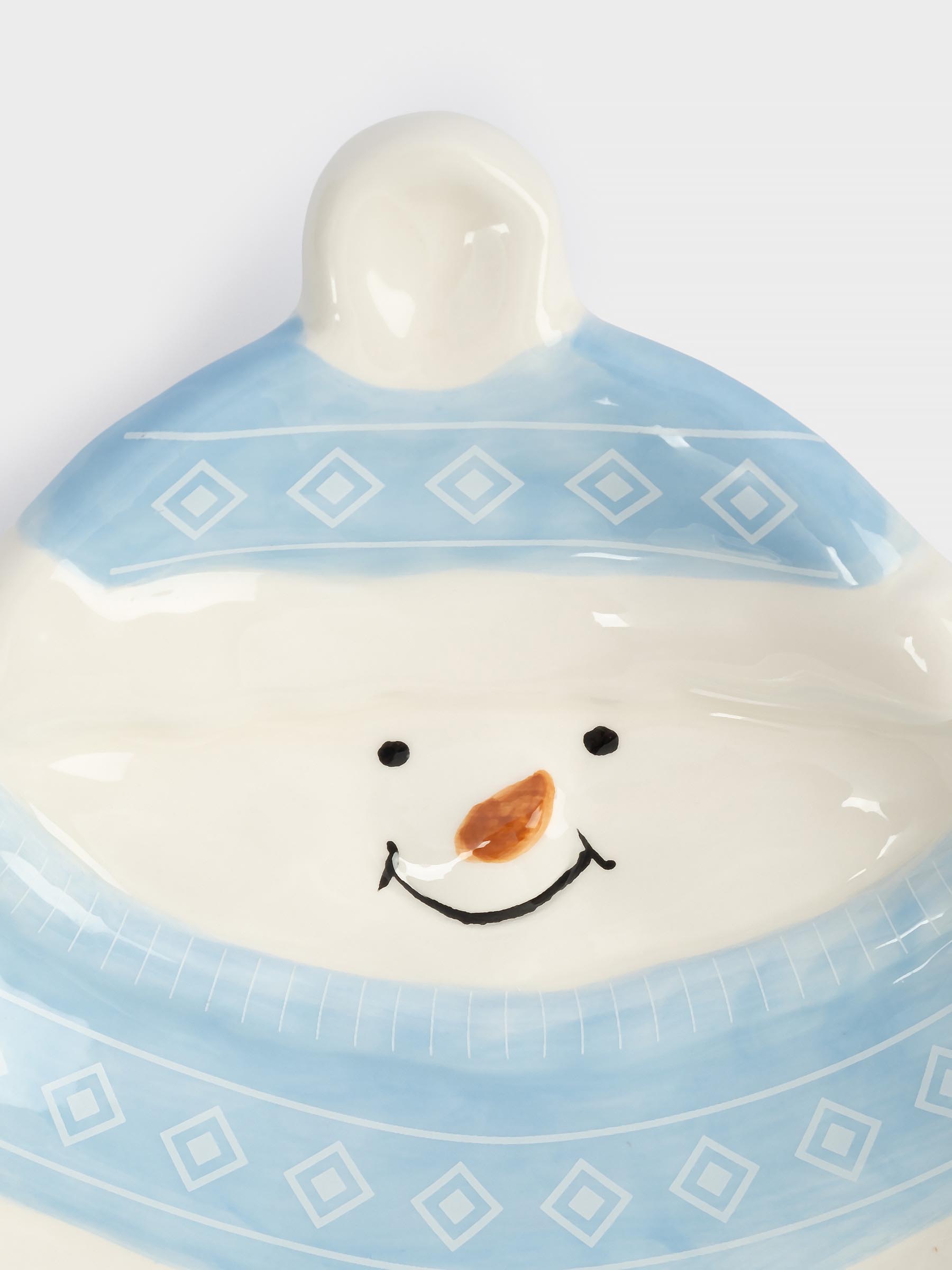 Блюдо, 18x22x4 см, керамика, бело-голубое, Снеговик в шапке и шарфе, Snowman
