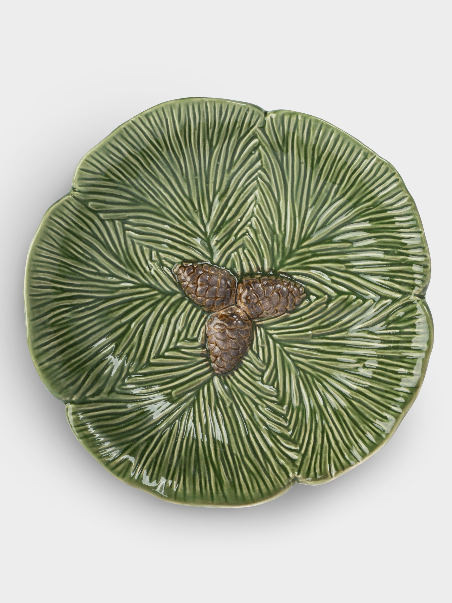 Блюдо, 19 см, керамика, зеленое, Шишки на еловой ветке, Fir branch