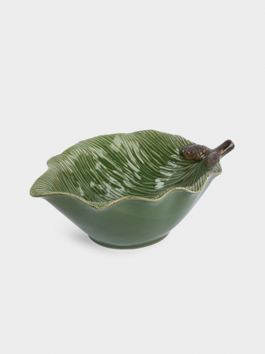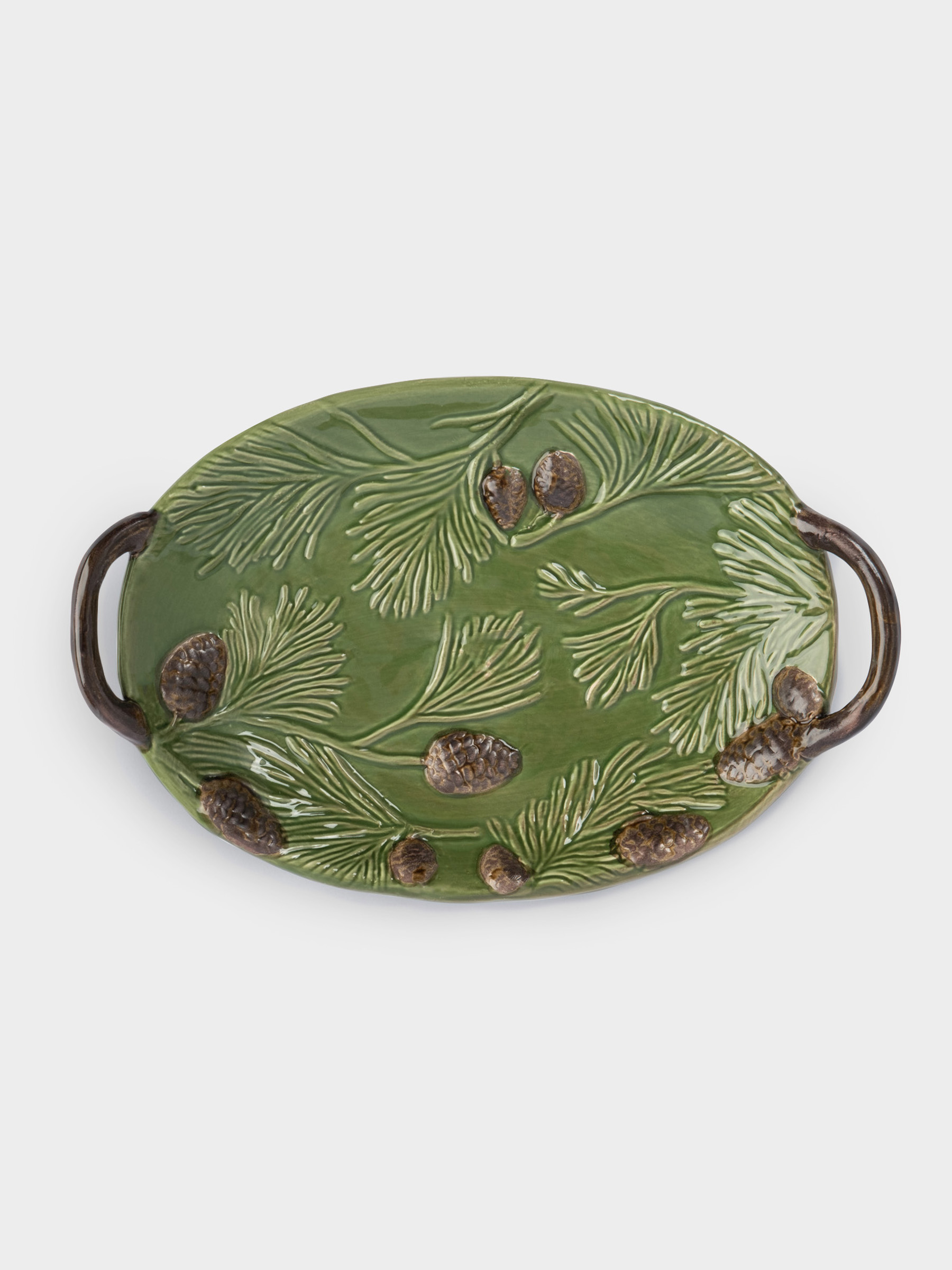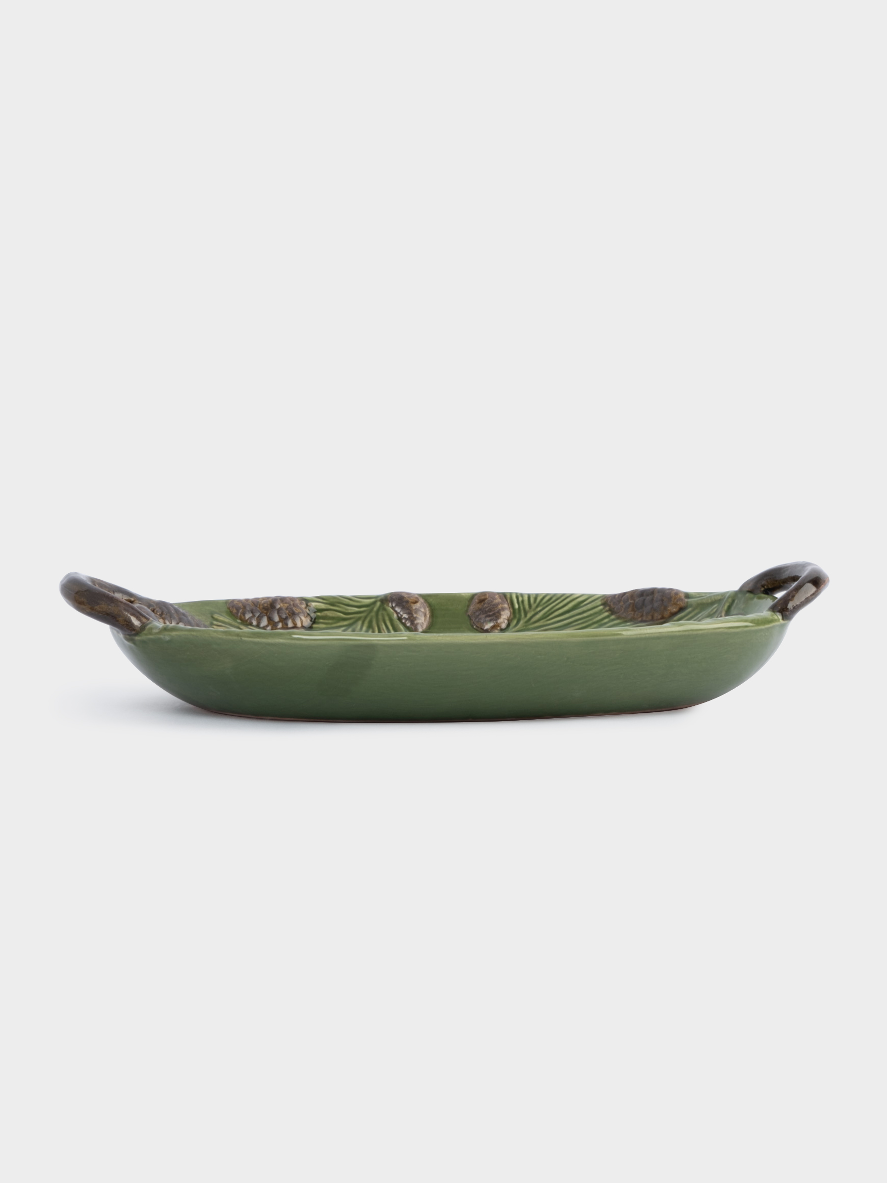 Блюдо, 29х19 см, с ручками, керамика, зеленое, Шишки на еловой ветке, Fir branch