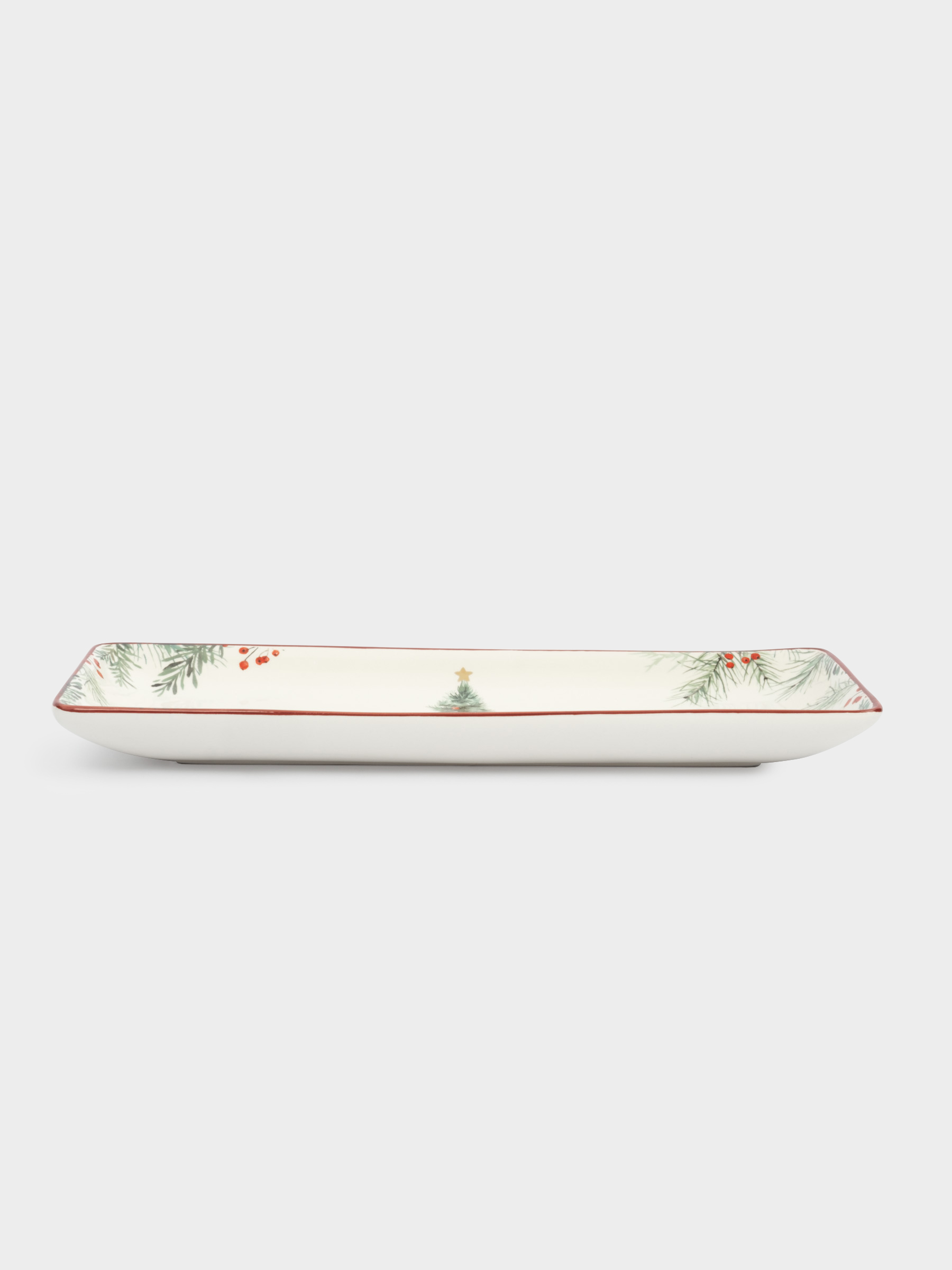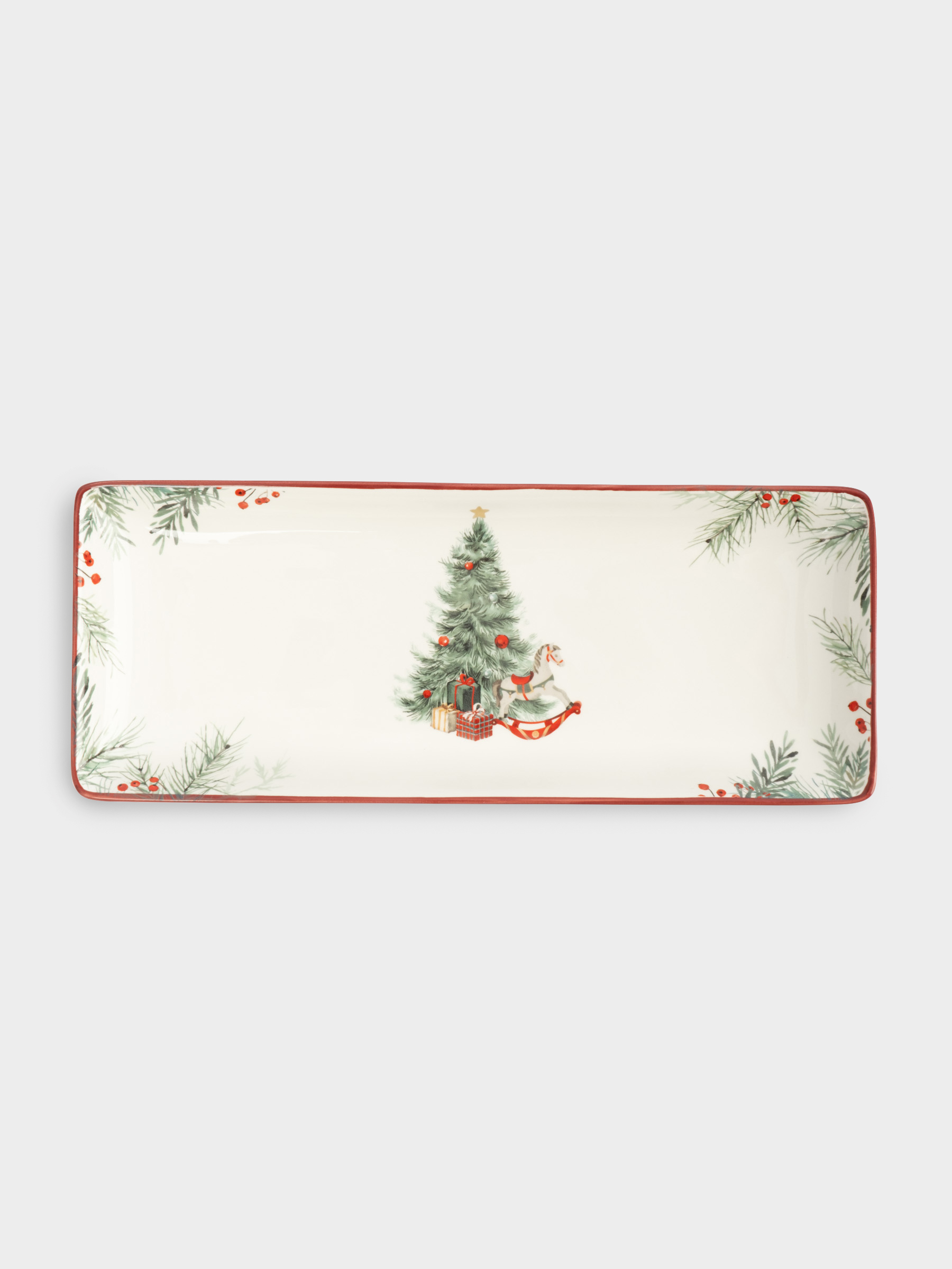 Блюдо, 34х13 см, доломитовая керамика, прямоугольное, красная, Лошадка у елки, Festival
