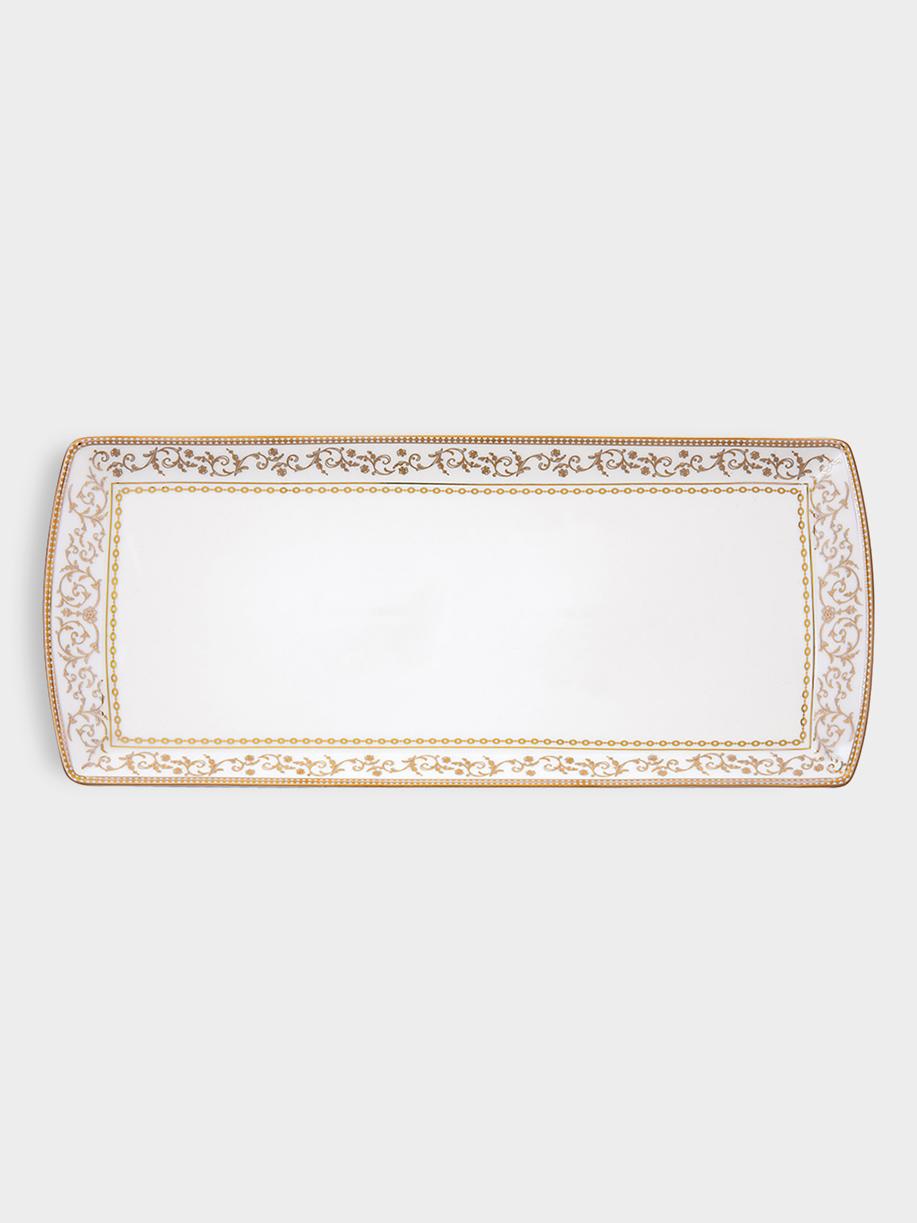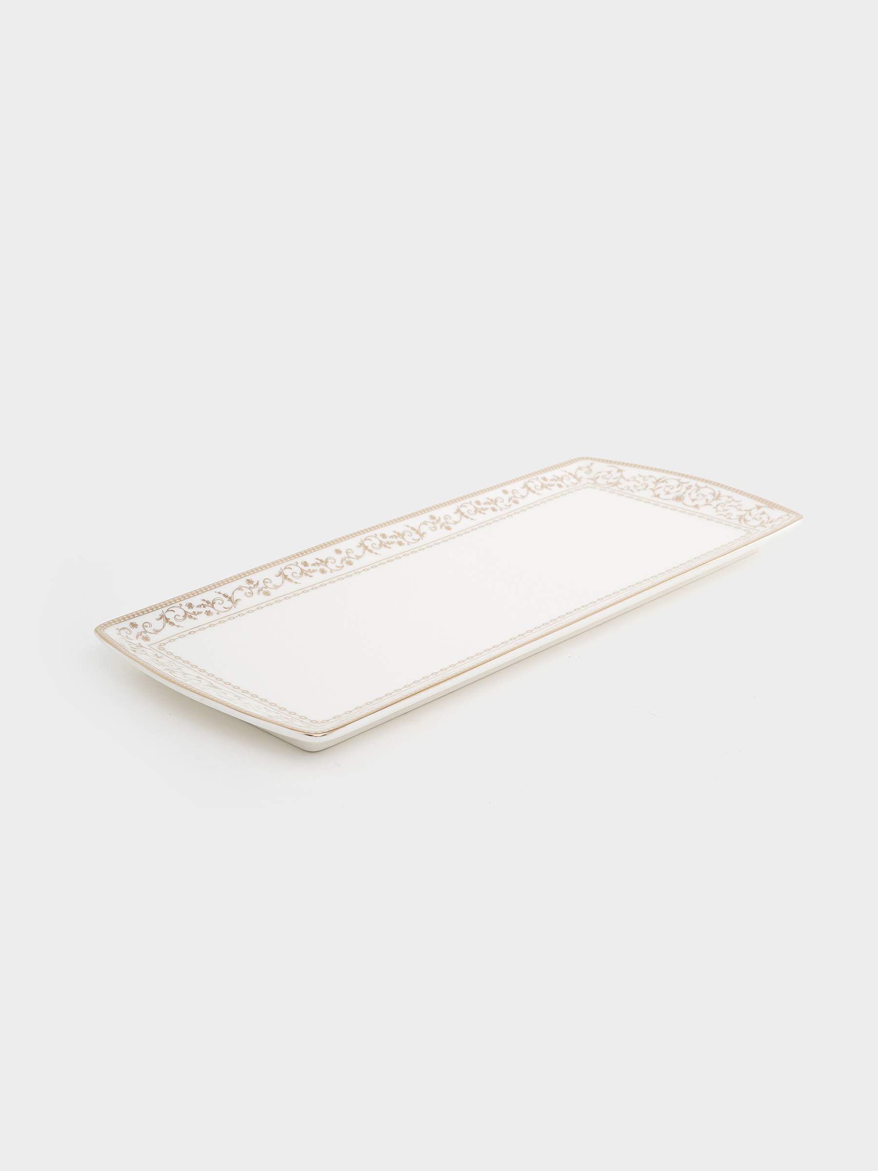 Блюдо, 35х15 см, фарфор N, белое, прямоугольное, с золотистым орнаментом, Golden. Материал: фарфор New Bone China. Мыть теплой водой с применением мягких моющих средств. Не использовать в СВЧ и в посудомоечной машине.