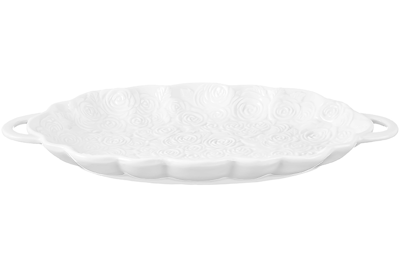 Блюдо для нарезки из серии «Розы» от Elan Gallery предназначено для эстетичной сервировки вашего стола. Размер изделия – 26х13,5х2,7 см, объём – 250 мл. Выполнено из высококачественного белого фарфора. Он не впитывает цвет продуктов и легко отмывается, благодаря чему надолго сохраняет свою белизну. Поверхность изделия украшают рельефные узоры в виде пышных бутонов роз. Подойдёт для подачи мясной и сырной нарезки, а также разнообразных деликатесов. Можно использовать для праздничной сервировки бутербродов и канапе. Эстетично преподнесите к столу суши и роллы. Блюдо поможет угостить большое количество гостей дольками фруктов или овощами, а также десертами и сладостями. Разложите на нём конфеты, пирожки и пирожные, кусочки торта или домашнего пирога. Удобные ручки облегчат переноску изделия. Благодаря лаконичному дизайну оно впишется в интерьер любой кухни, гостиной и столовой. Не рекомендуется применять абразивные моющие средства. Подходит для использования в посудомоечной машине и микроволновой печи. Поставляется в дизайнерской картонной коробке – благодаря ей вам не потребуется дополнительная подарочная упаковка. Фарфоровая сервировочная посуда будет оригинальным подарком для хозяйки, ценящей не только практичность, но и привлекательность. Серия «Розы» от бренда Элан Галерея станет украшением любого кухонного инвентаря и позволит собрать красивый сервиз в едином стиле!