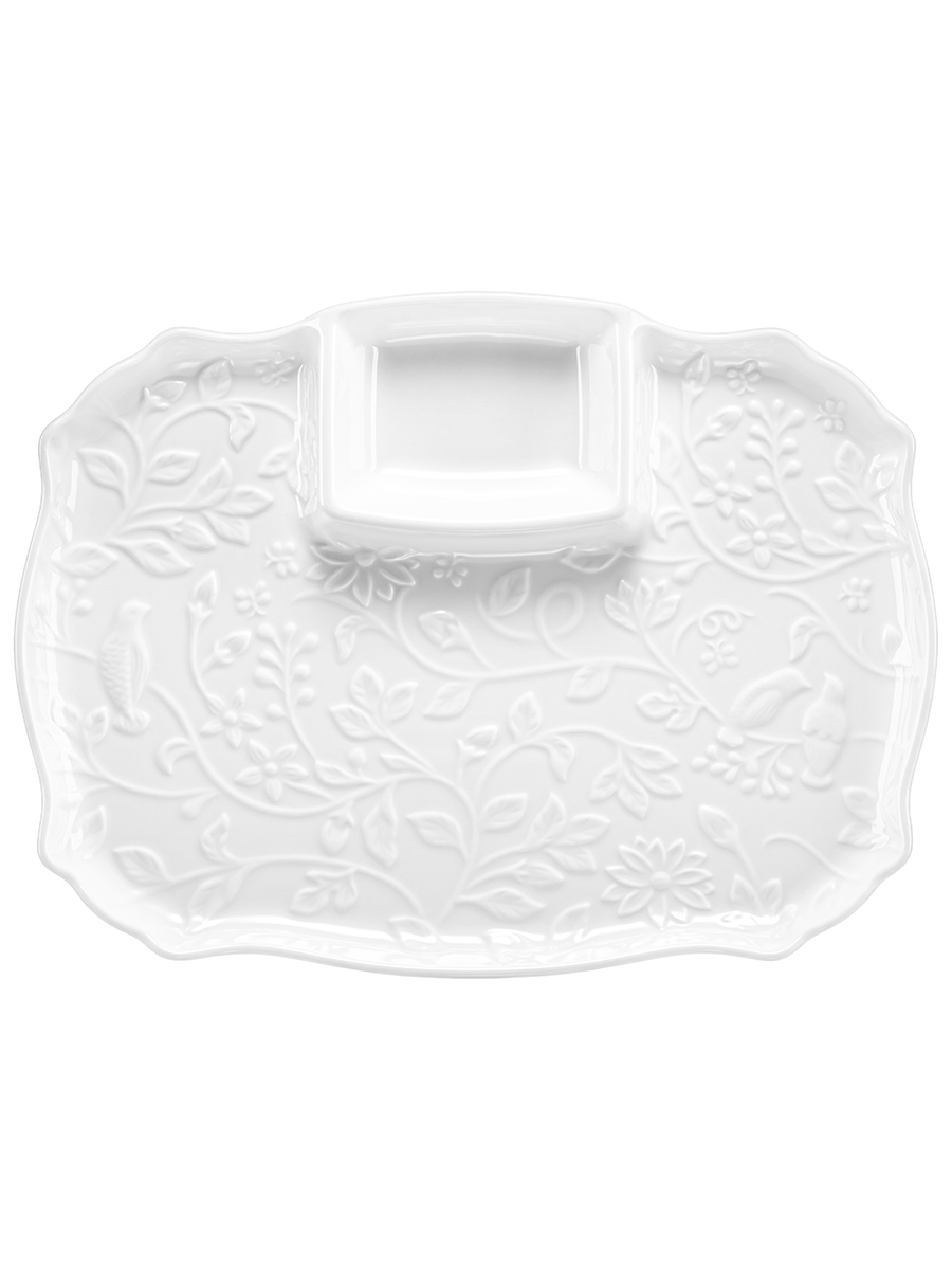 Блюдо д/шашлыка 28*21*2,3 см "Птички на ветке" с соусницей, фарфор