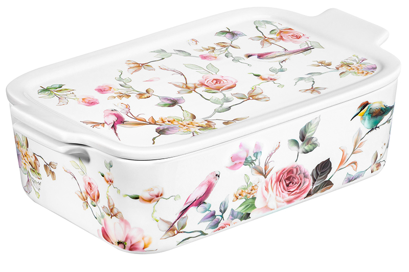 Блюдо д/запекания 2,1 л 29,5*18*8,5 см "Певчие птички" NEW BONE CHINA крышкой прямоугольное, фарфор