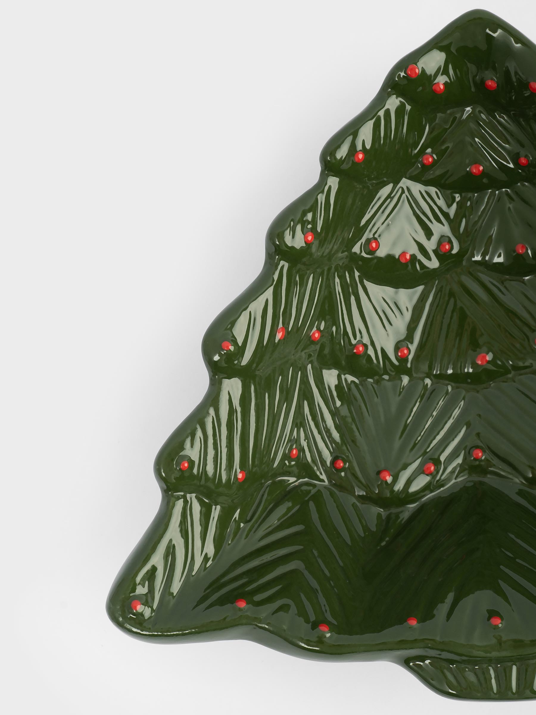 Блюдо глубокое, 18x16x5 см, керамика, зелено-красное, Елка, Fir