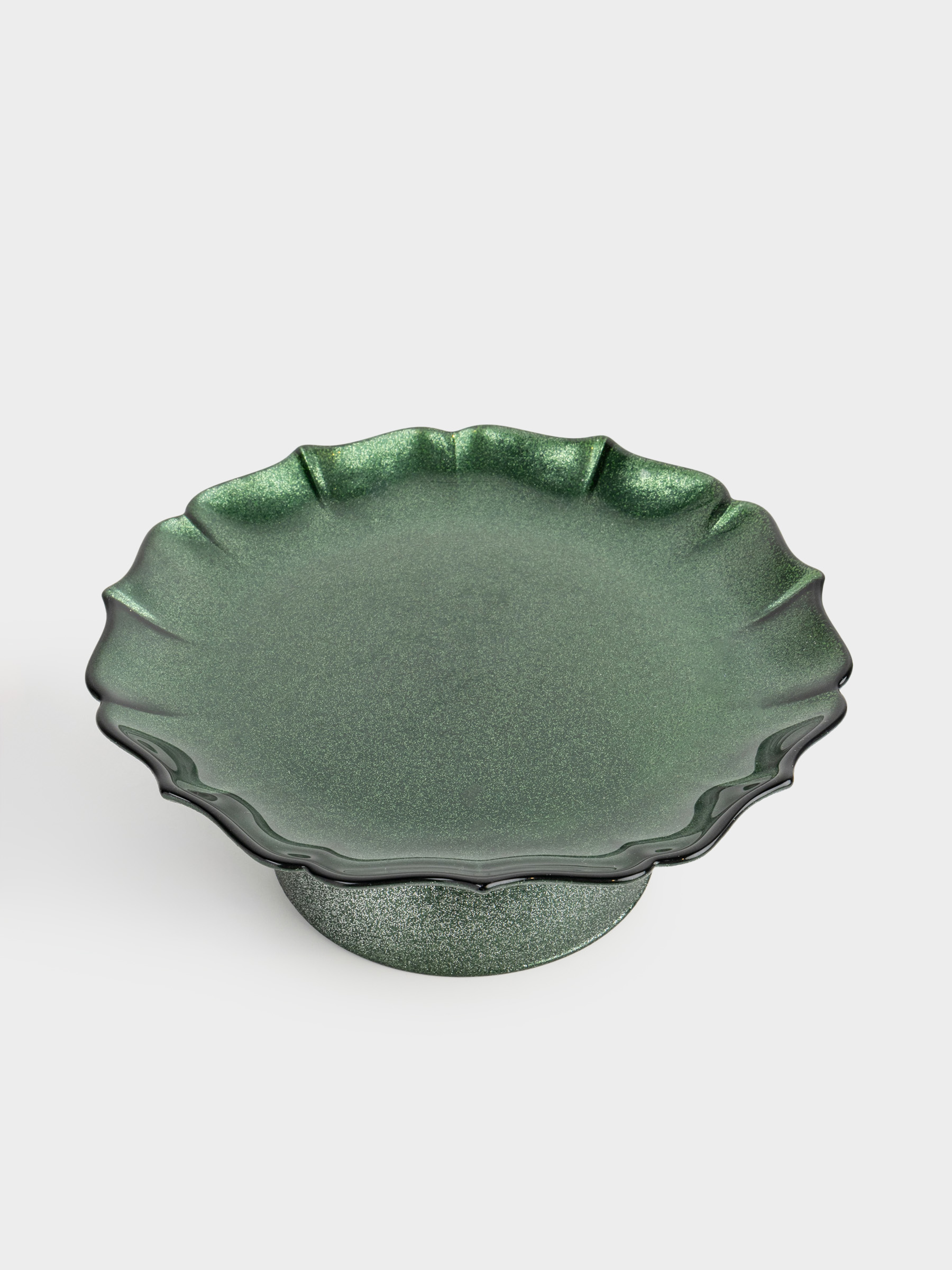 Блюдо на ножке, 21х8 см, стекло, зеленое, Seville