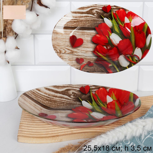 Блюдо овальное глубокое 25 см / S441210 HH326 GREY Тюльпаны /уп 6/36/ цветная коробка ДОП СКИДКА ОТ 3 шт 2%