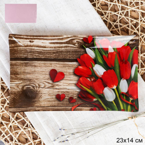 Блюдо прямоугольное 23x14 см / S322314 DD436 GREY Тюльпаны / уп 6/72/ цветная коробка ДОП СКИДКА ОТ 3 шт 2%
