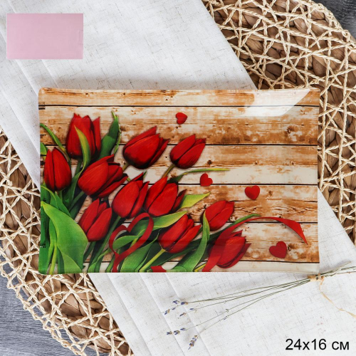 Блюдо прямоугольное 24x16 см / S322416 FF113 GREY Тюльпаны / уп 6/48/ цветная коробка ДОП СКИДКА ОТ 3 шт 2%