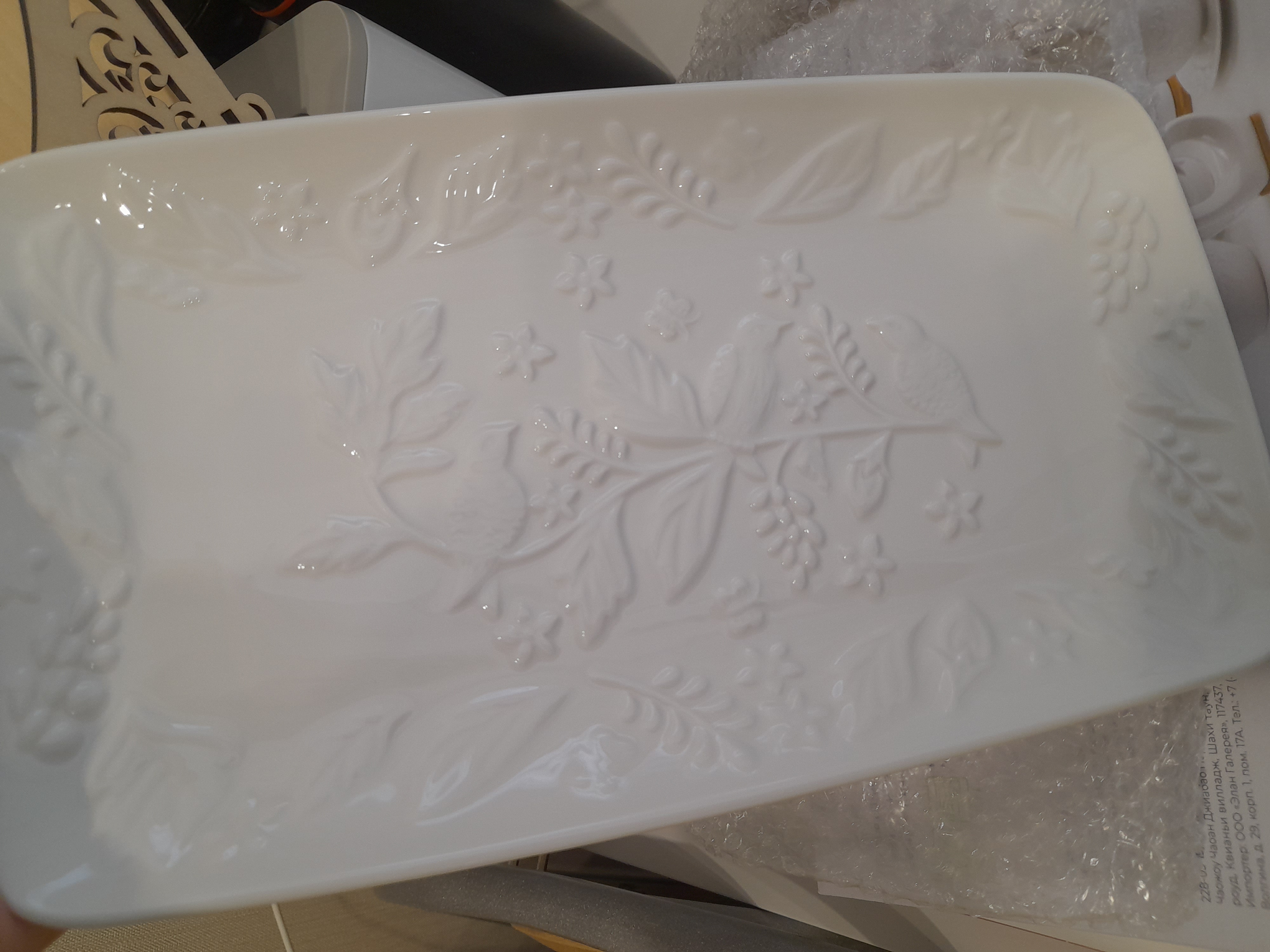Отзывы и вопросы о товаре «Блюдо прямоугольное 30,5*16,5*2,5 см "Птички на ветке" белое»
