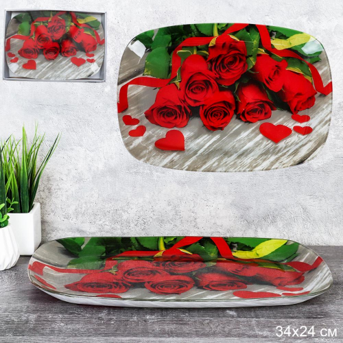 Блюдо прямоугольное глубокое 34х24 см / S445014C - Y044 /уп 12/ Букет роз ДОП СКИДКА ОТ 1 шт 2%