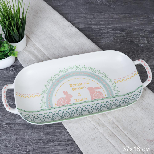 Блюдо с ручками прямоугольное 36х17 см / RG-324 /уп 15/ Пасха Кролики